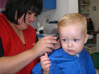 The time has come to get the first haircut. {boo hoo, sob, sob}. Let me pull myself together. My baby is growing up. Plus, his hair was getting very lopsided on his left. It had to be cut. It had to be evened out.